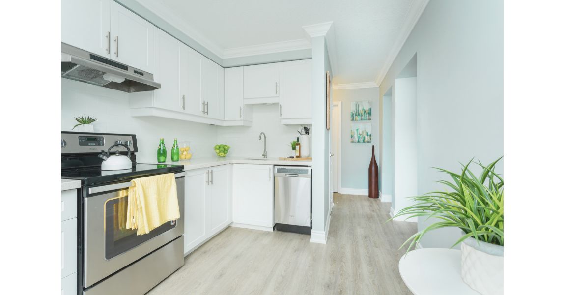 Our sleek and stylish two-bedroom suite offers a spacious layout. Our apartment includes microwave, abundant storage, and modern vinyl plank flooring. Our suites also feature quartz countertops and stainless-steel appliances (fridge and stove). All suites feature sophisticated interiors that are rich, comfortable, and sumptuous. You'll love inviting friends and family over for entertaining in this fabulous space and balcony!